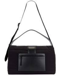 Details - Padded ripstop exterior with leather trim and canvas lining - Foldover top with magnetic snap closure - One main compartment - One interior slip pocket - One exterior slip and zip pocket - Rubberized logo detail - Measures approx 39 cm W x 25 cm H x 15 cm D - Shoulder strap with a 41 cm drop - Top handle with a 11 cm drop - Made in Italy - Our Style No. JQUF-MY70 - Manufacturer Style No. 25E255BA422-3174-990