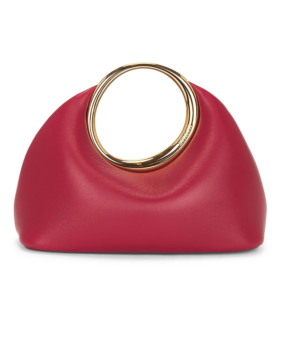 Details - Calfskin leather upper with twill lining - Made in Italy - Structured frame with dual top magnetic button closure - One main compartment - Structured silver-tone statement handle - Measures approx 23 cm W x 10 cm H x 8 cm D - Top handle with a 9 cm drop - Our Style No. JQUF-WY415 - Manufacturer Style No. 24EBAW00395AC27L14