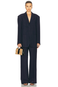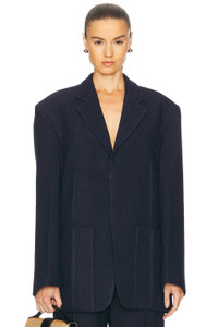 Details - Self: 71% viscose, 21% virgin wool, 8% polyamide - Pocket Lining: 97% cotton, 3% elastane - Made in Romania - Dry clean only - Front button closure - Padded shoulders - 3-pocket design - Heavyweight textured crepe fabric - Item not sold as a set - Our Style No. JQUF-WO83 - Manufacturer Style No. 22E213JA101-1670