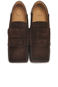 Details - Croc-embossed suede upper with leather sole - Made in Italy - Slip-on styling - Wide penny-keeper - Collapsible heel - Designed to be worn as a folded mule - Square toe - Embossed logo on insole - Our Style No. JQUF-WZ112 - Manufacturer Style No. 243FO147-4355