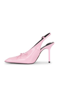 Details - Patent leather upper with leather sole - Made in Italy - Sling-back styling with buckled strap - Leather footbed and lining - Bow at vamp - Pointed toe with stiletto heel - Approx 95mm/ 3.75 inch heel - Our Style No. JQUF-WZ116 - Manufacturer Style No. 241FO137-4036