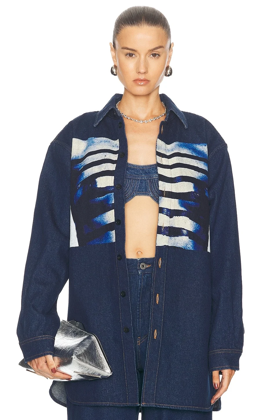Details - 100% cotton - Made in Italy - Machine wash - Front button closure - Buttoned cuffs - Graphic detail on front - Item not sold as a set - Midweight denim fabric - Our Style No. JIEF-WS101 - Manufacturer Style No. 24/30-F-CH061I-D018-555600