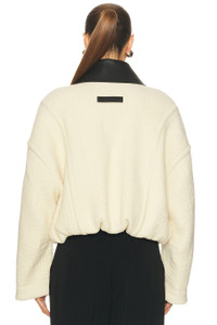 Details - Self: 92% acetate, 8% polyester - Lining: 100% cotton - Dry clean only - Exposed front zipper closure - Side seam pockets - Back logo tag detail - Heavyweight textured knit fabric with faux leather trim - Made in Italy - Our Style No. JIEF-WO28 - Manufacturer Style No. 25/03-U-OU001-W001-0300