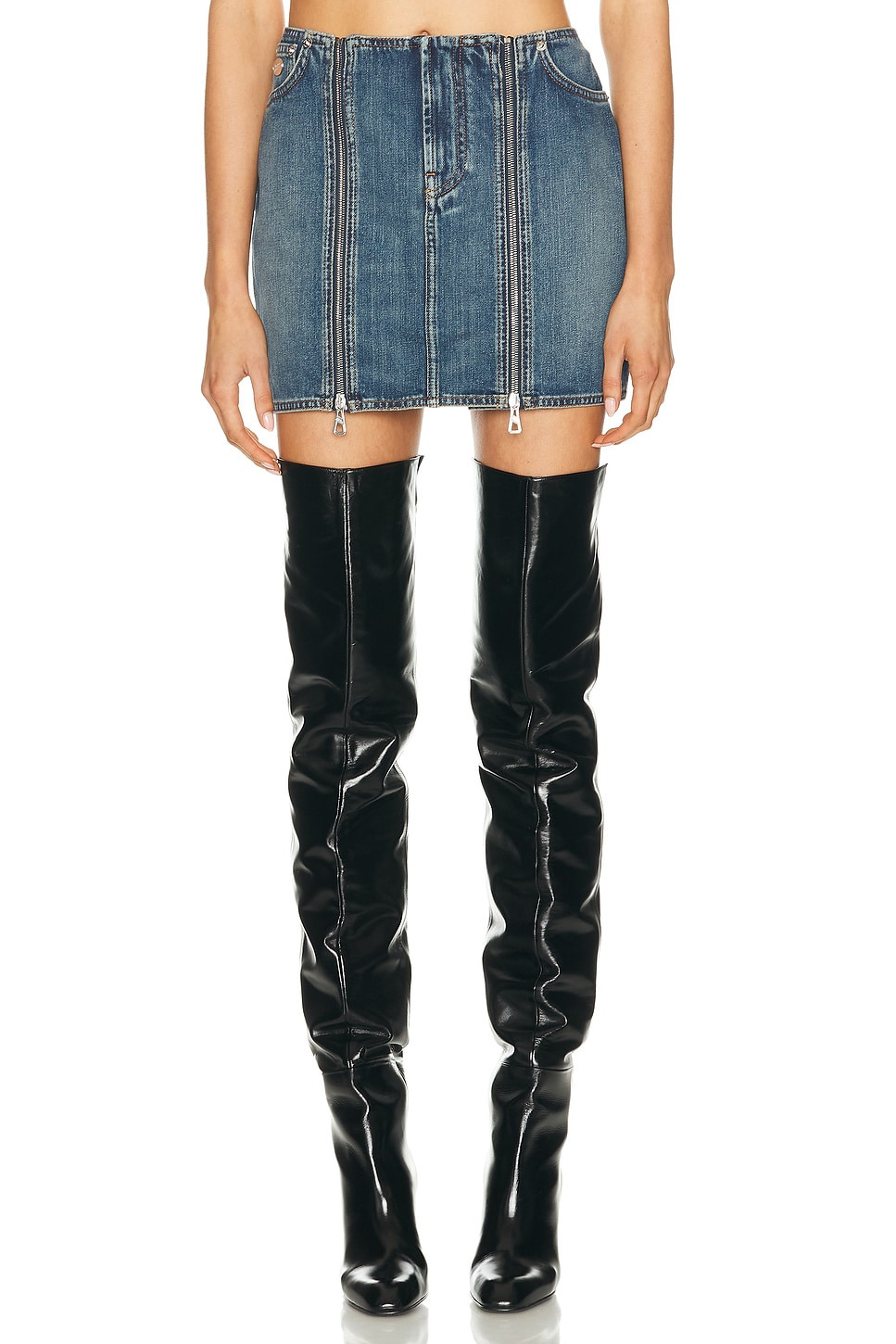 two-zip detail denim mini skirt
