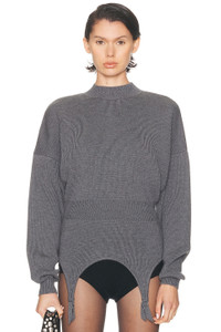 High Neck Bat Sleeves Lingerie Garter Pullover Sweater