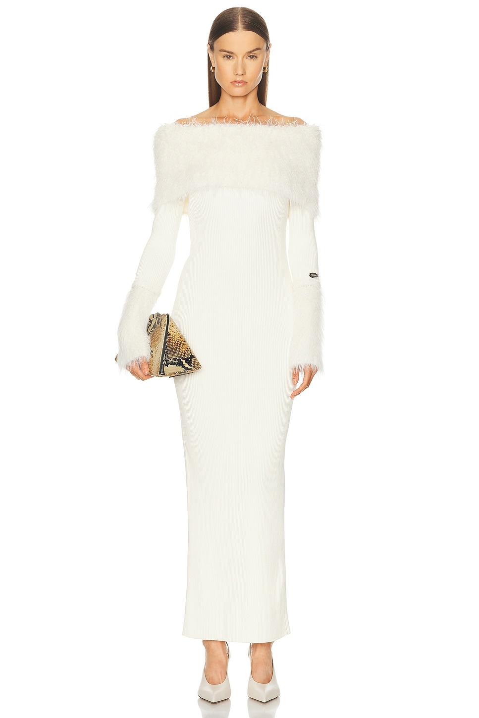 ribbed faux-fur trimmed dress