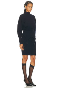 Ribbed High Neck Bat Sleeves Lingerie Garter Short Dress