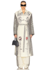 Details - Self 1: 54% cotton, 40% polyamide, 6% elastane - Self 2: 100% cotton - Self 3: 100% horn - Dry clean only - Hidden front button closure - Light padding at shoulders - Optional belt - Side seam pockets - Taffeta fabric - Item not sold as a set - Made in Italy - Our Style No. JIEF-WO27 - Manufacturer Style No. 25/34-U-MA035-C587-030030