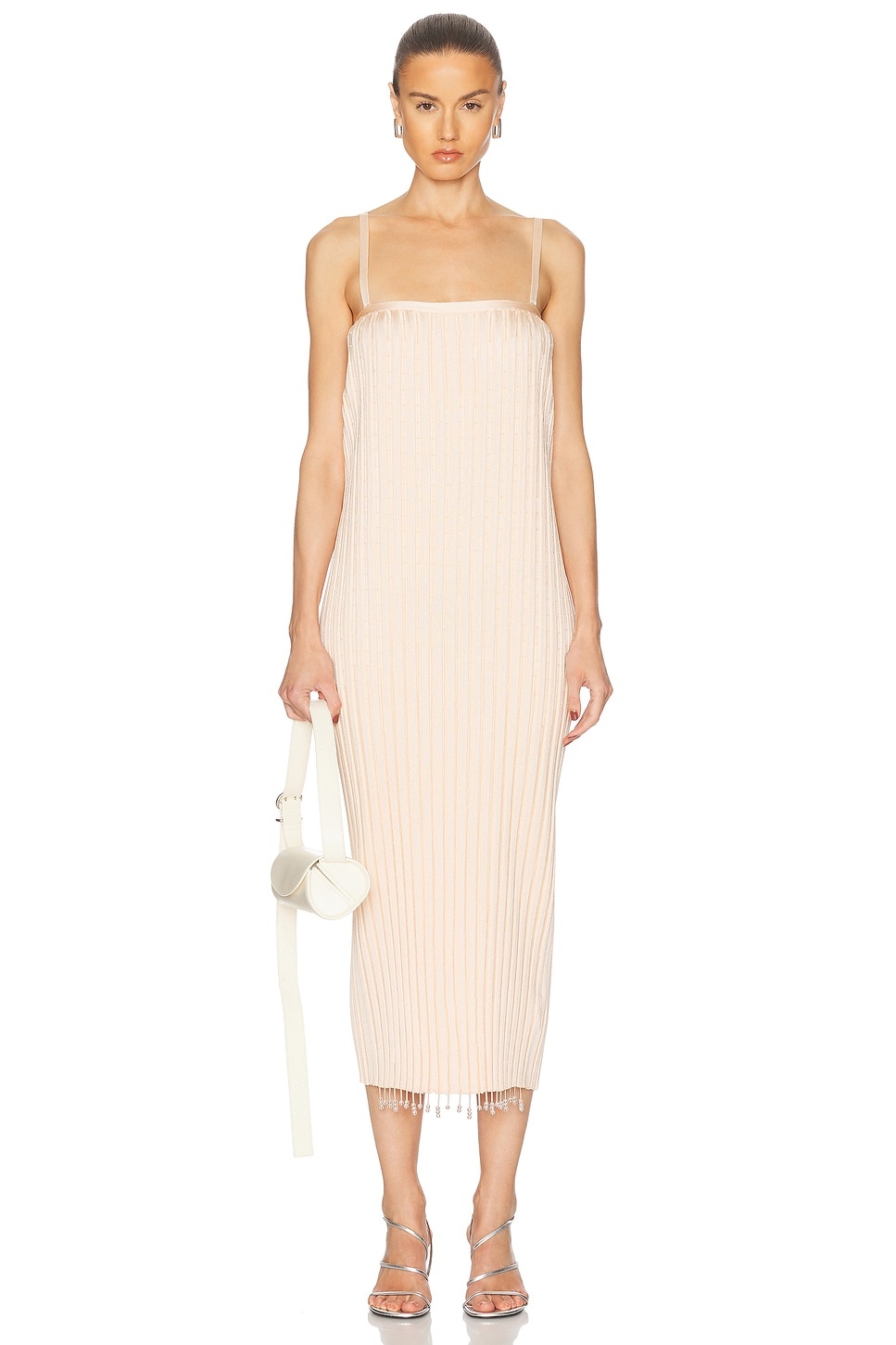 Details - Self: 93% viscose, 5% polyamide, 2% elastane - Contrast Fabric: 100% glass - Made in Italy - Dry clean only - Unlined - Hidden side zip closure - Embroidered beaded detailing - Fringed beaded hem - Heavyweight ribbed knit fabric - Our Style No. JILS-WD39 - Manufacturer Style No. J01CT0228-J18334-683