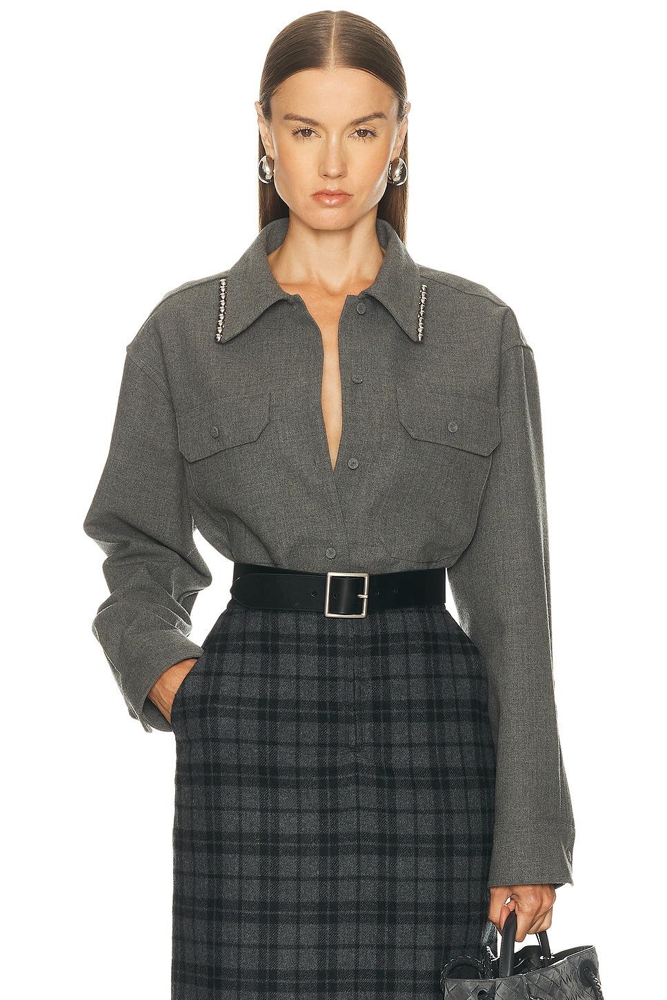 Details - Self: 100% wool - Lining: 100% viscose - Dry clean only - Front button closure - Breast flap pockets - Silver-tone studded detail at collar - Buttoned cuffs - Twill fabric - Made in Italy - Our Style No. JILS-WS87 - Manufacturer Style No. J03DL0210-J41557-030