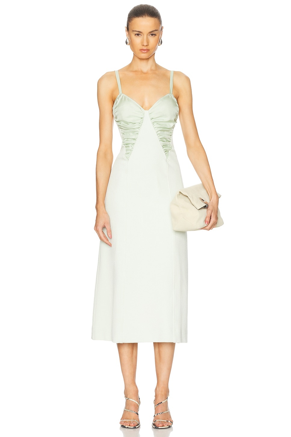 Details - Self: 70% viscose, 28% cotton, 2% elastane - Lining: 100% viscose - Made in Italy - Dry clean only - Fully lined - Hidden side zip closure - Ruched bodice detailing and back vent - Heavyweight textured sateen fabric - Our Style No. JILS-WD35 - Manufacturer Style No. J01CT0226-J20255-340