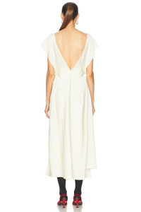 Details - Self: 74% acetate, 26% viscose - Lining: 95% viscose, 5% elastane - Made in Italy - Dry clean only - Partially lined at bust - Hidden side zip closure - Draped neckline with ruffle sleeves - Heavyweight sateen fabric - Our Style No. JILS-WD34 - Manufacturer Style No. J02CT0469-J76018-109