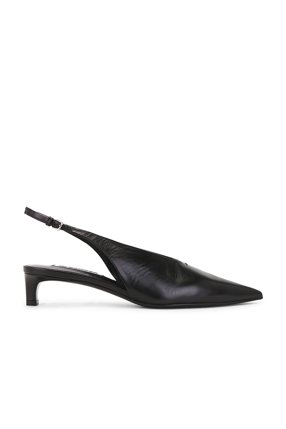 Details - Leather upper and sole - Made in Italy - Slingback styling with adjustable buckle closure - Leather lining - Pointed toe - Kitten heel - Approx 35mm/ 1.35 inch heel - Our Style No. JILS-WZ33 - Manufacturer Style No. J15WP0128-P4864-001