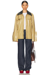 Details - Self 1: 100% linen - Self 2: 100% polyurethane - Self 3: 100% calfskin - Pocket Lining: 100% cotton - Made in Italy - Professional wet clean only - Front button closure - Breast seam pockets - Side seam pockets - Buttoned cuffs - Coated linen with leather collar - Our Style No. JILS-WO9 - Manufacturer Style No. J02SW0012-J60082-235