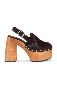 Alida Platform 135 Suede Slingback Clog with Sangallo Embroidery
