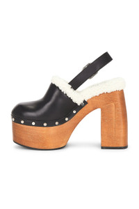 Alida Platform 135 Black Shiny Calf Leather Slingbacks with Shearling