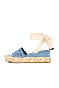 Details - Denim upper with rubber sole - Wraparound twill tie closure - Leather footbed and lining - Cut-out floral detail at vamp - Jute midsole - Approx 25mm/ 1 inch platform - Made in Italy - Our Style No. JIMM-WZ448 - Manufacturer Style No. ARLEE WEDGE 60