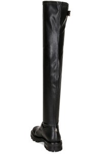 Biker II OTK Flat Black Stretch Bonded Fabric Knee-High Biker Boots