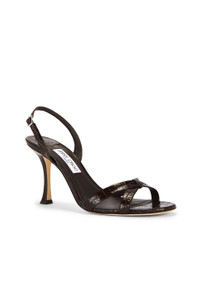 Details - Croc embossed leather upper with leather sole - Slip-on styling with silver-tone ankle buckle - Cushioned leather footbed and lining - Rounded toe - Flare stiletto heel - Approx 90mm/ 3.5 inch heel - Made in Italy - Our Style No. JIMM-WZ456 - Manufacturer Style No. ELSY 90