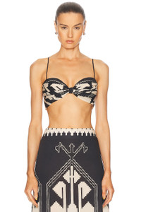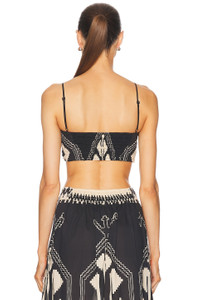 Nudos Del Mar cropped printed cotton-poplin top Black