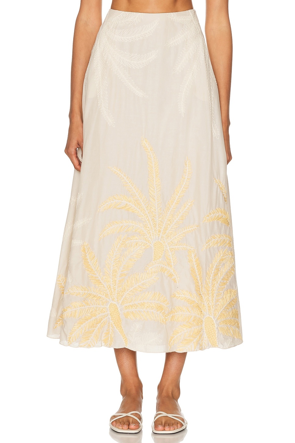 Details - Self & Lining 100% cotton - Contrast Fabric: 100% viscose - Dry clean only - Fully lined - Hidden back zip closure - Wrap around embroidered palm tree design - Midweight linen fabric - Item not sold as a set - Made in Colombia - Our Style No. JOTZ-WQ72 - Manufacturer Style No. PT02879