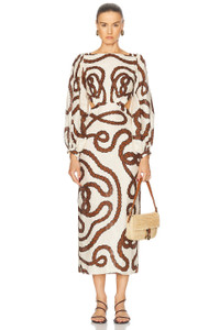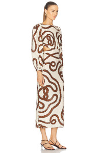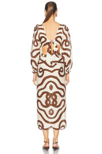 Sailing Robes Balloon Sleeve Linen Midi Dress neutral
