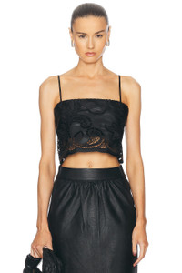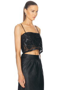 Seduccion Lunar cropped guipure lace-trimmed embroidered faux leather top