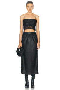 Details - 100% polyester - Made in Colombia - Dry clean only - Hidden back zipper closure - Cropped fit - Faux leather with lace overly - Our Style No. JOTZ-WS133 - Manufacturer Style No. PT02442