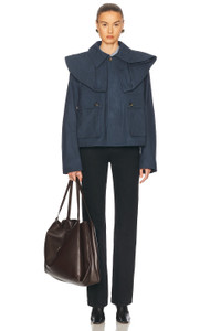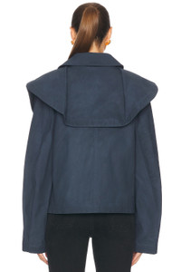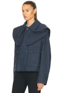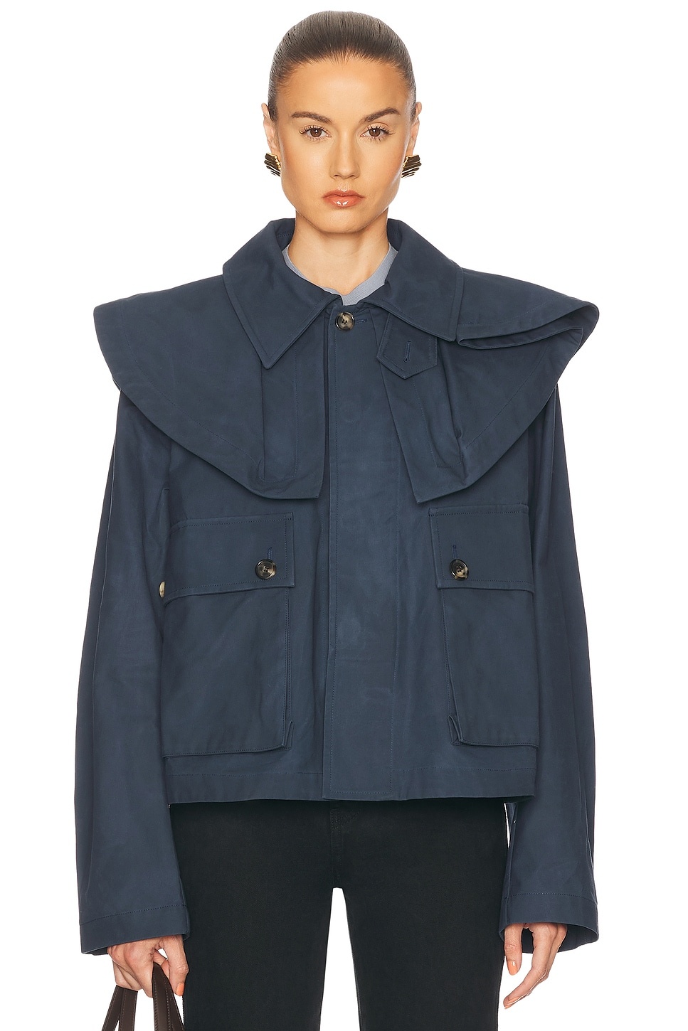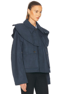 Details - 100% cotton - Made in Bulgaria - Dry clean only - Hidden front button closure - Flounce ruffle detail at shoulders - Front flap pockets - Twill fabric - Our Style No. JWAF-WO15 - Manufacturer Style No. JK0366-PG1683