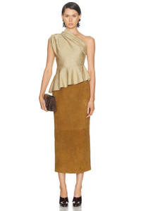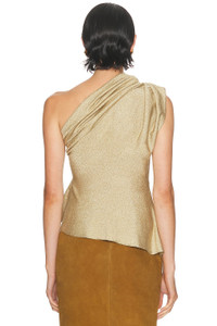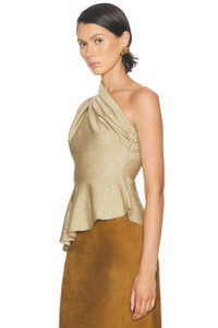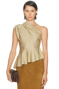 Aimee asymmetric one-shoulder draped Lurex peplum top Gold