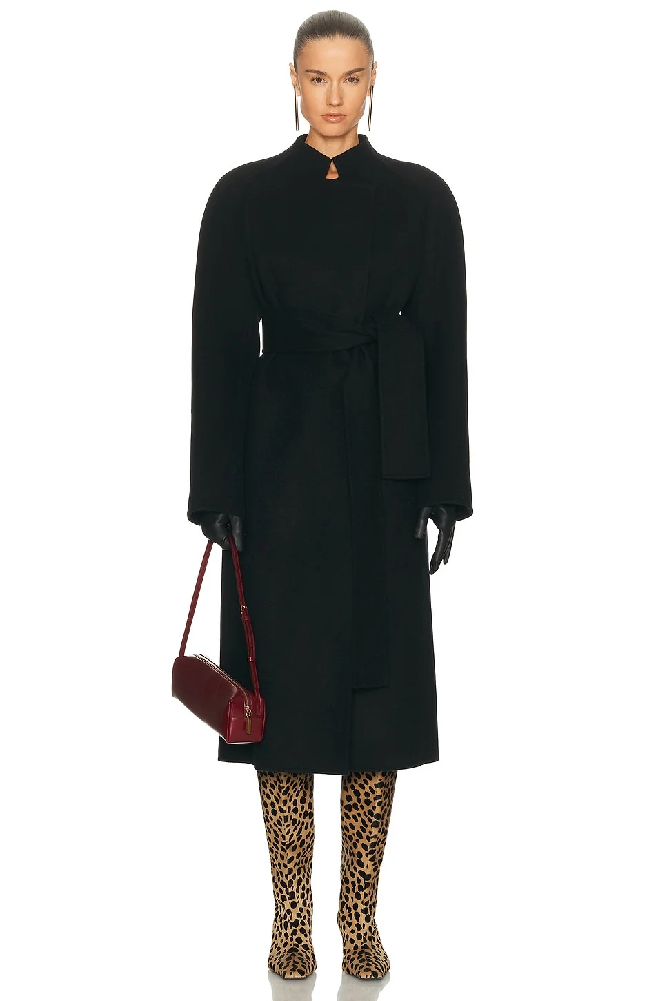 Details - Self: 100% wool - Lining: 100% cupro - Made in Made in USA - Dry clean only - Waist tie closure - Side seam pockets - Midweight melton textile - Notched collar - Our Style No. KTAH-WO93 - Manufacturer Style No. 7142547