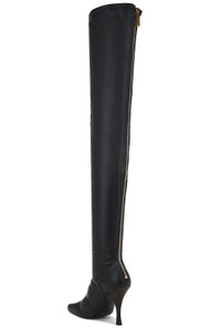 Details - Leather upper with leather sole - Made in Italy - Partial side zipper closure - Leather footbed and lining - Square toe with narrow wooden block heel - Approx 100mm/ 4 inch heel - Approx 660.4mm/ 26 inch shaft - Our Style No. KTAH-WZ189 - Manufacturer Style No. F1098-836