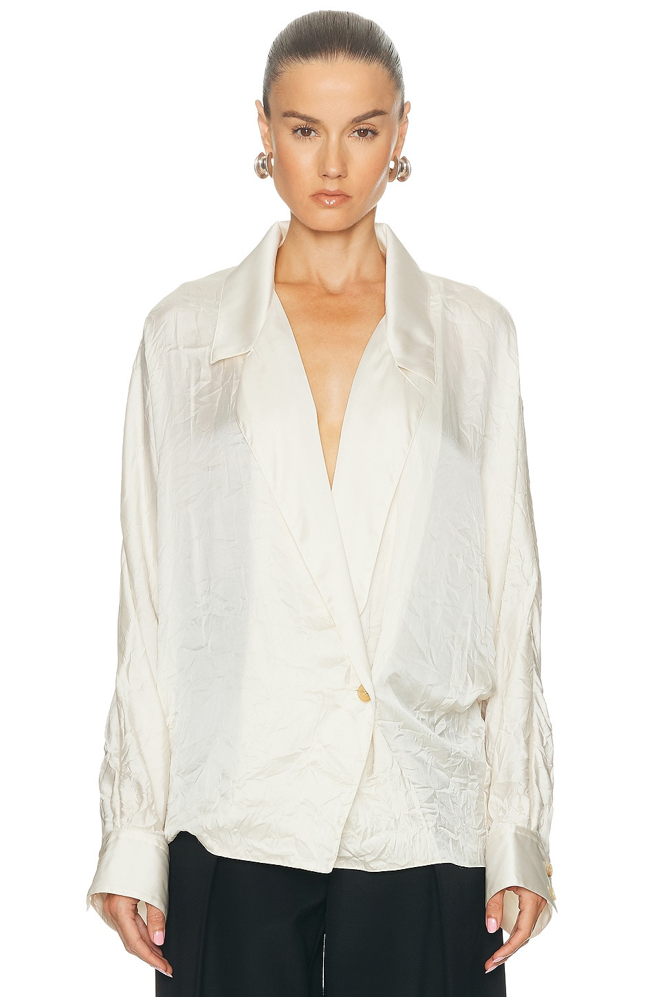 Garth Wrap-Front Satin Blouse off-white