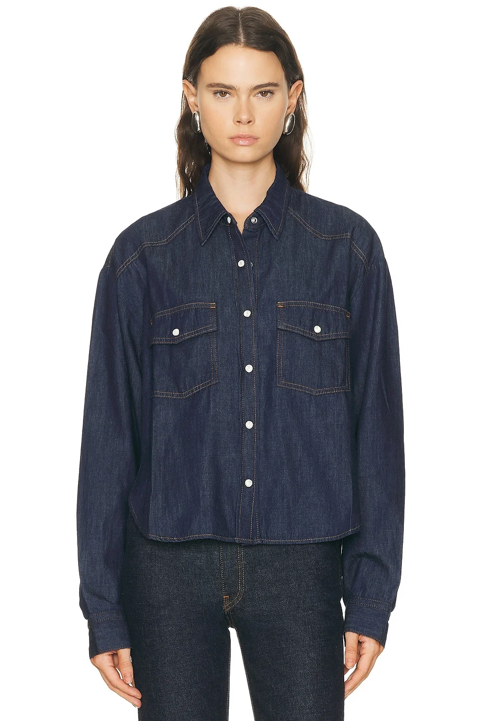 Details - 100% cotton - Made in USA - Hand wash cold or dry clean - Snap button closure - Breast panel pockets - Lightweight denim material - Our Style No. KTAH-WS282 - Manufacturer Style No. 1184923040
