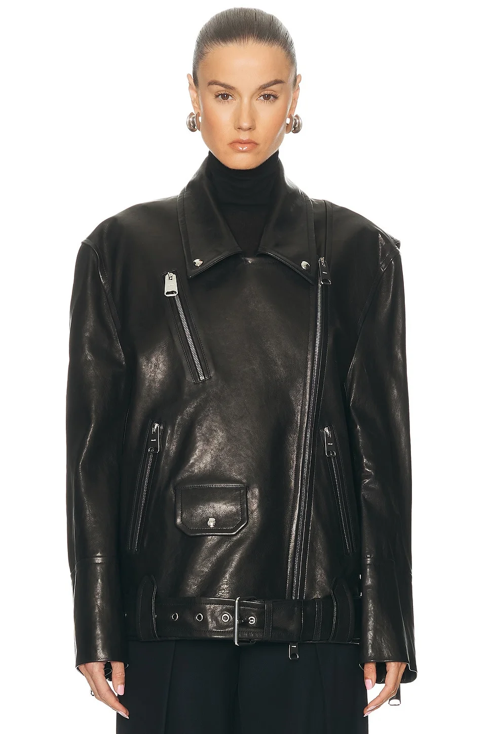 Details - Self: 100% lambskin leather ovis aries - Leather country of origin: Italy - Lining 1: 100% cupro - Lining 2: 94% silk, 6% elastane - Made in USA - Professional dry clean by leather and fur specialist - Front zipper closure - Zipped pockets - Buttoned pocket at front - Leather textile - Zipped cuffs - Detachable belt included - Our Style No. KTAH-WO82 - Manufacturer Style No. 6175729