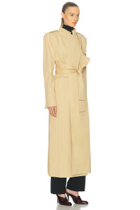 Details - Self: 100% cotton - Lining: 100% cupro - Dry clean only - Front tie closure with detachable belt - Front faux welt pockets - Padded shoulders - Notched lapel collar - Back storm flap - Heavyweight twill fabric - Made in Italy - Our Style No. KTAH-WO81 - Manufacturer Style No. 7133193