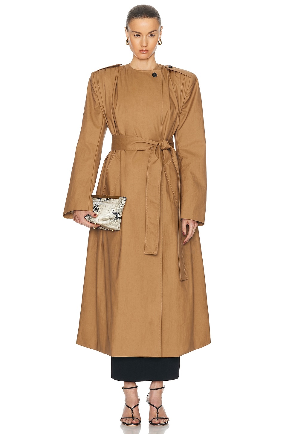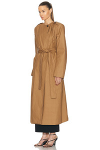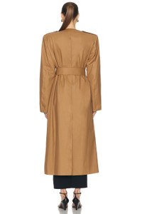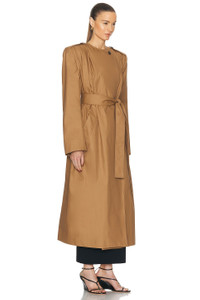 Details - Self: 69% cotton, 31% polyamide - Lining: 100% cupro - Made in USA - Hand wash - Pull-on styling with top button closure - Padding at shoulders with belt tie design at waist - Side slant welt pockets - Our Style No. KTAH-WO54 - Manufacturer Style No. 7106171
