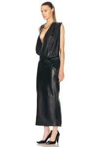 Details - Leather fabric - Imported - Leather specialist cleaning recommended - Fully lined - Hidden back zipper closure - Plunging neckline - Ruched fabric at bodice - Our Style No. KTAH-WD152 - Manufacturer Style No. 5451887