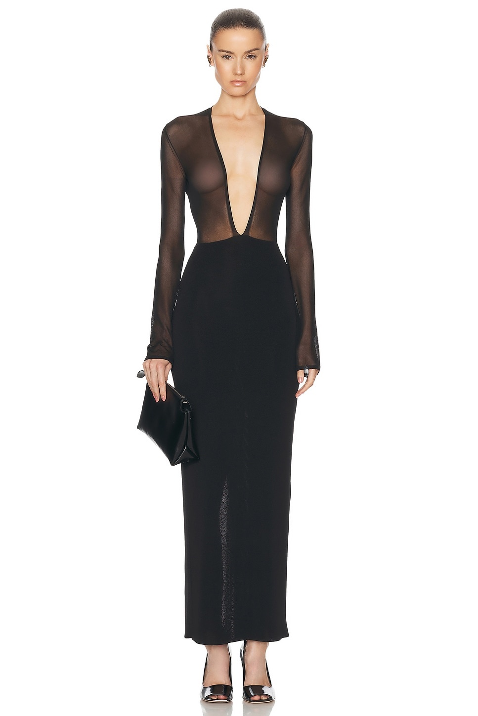 Details - Mesh textile - Imported - Dry clean recommended - Unlined - Hidden side zipper - Plunging neckline with upper mesh fabric - Our Style No. KTAH-WD148 - Manufacturer Style No. 9602435