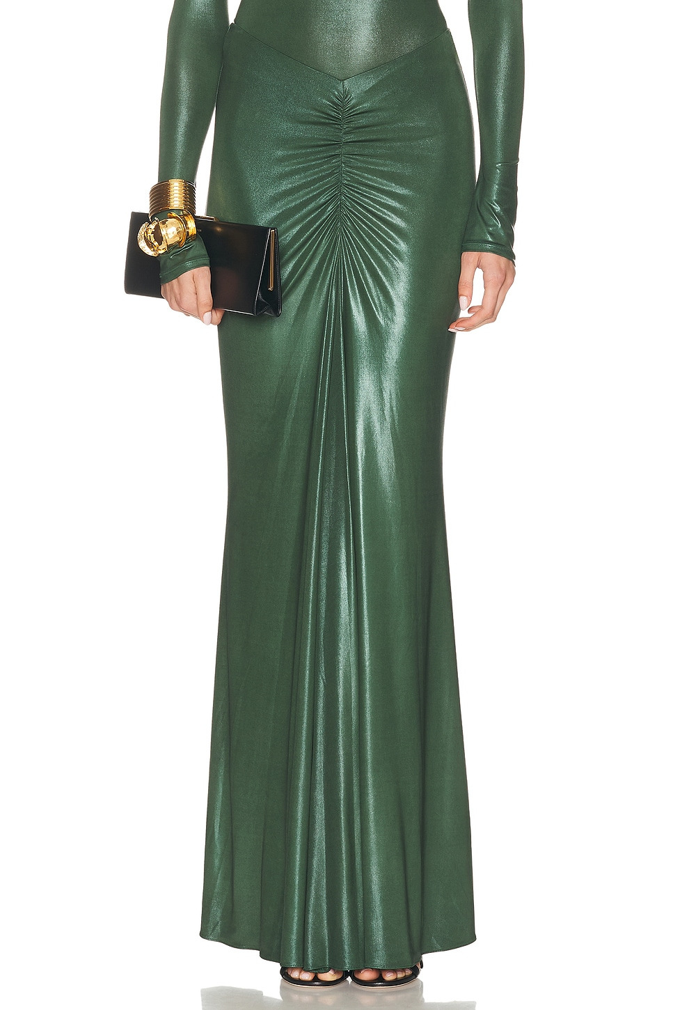 Coated Jersey Ruched Maxi Skirt