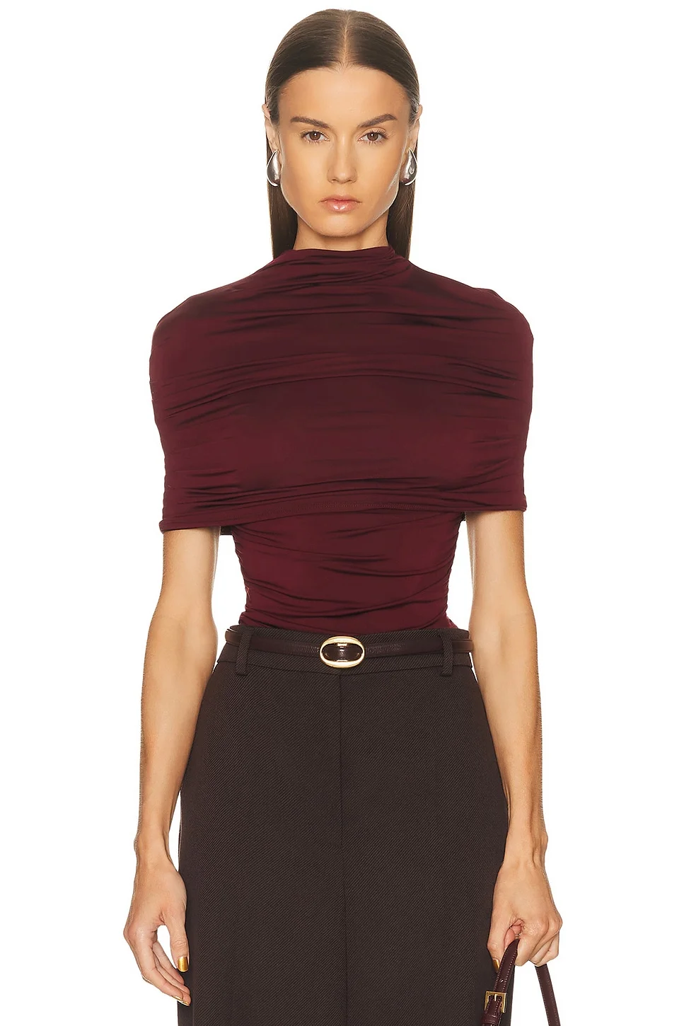 Details - 94% acetate, 6% elastane - Dry clean only - Hidden back zip closure - Mockneck design - Ruched sides - Midweight jersey fabric - Made in China - Our Style No. LNTF-WS56 - Manufacturer Style No. R4262305OKC