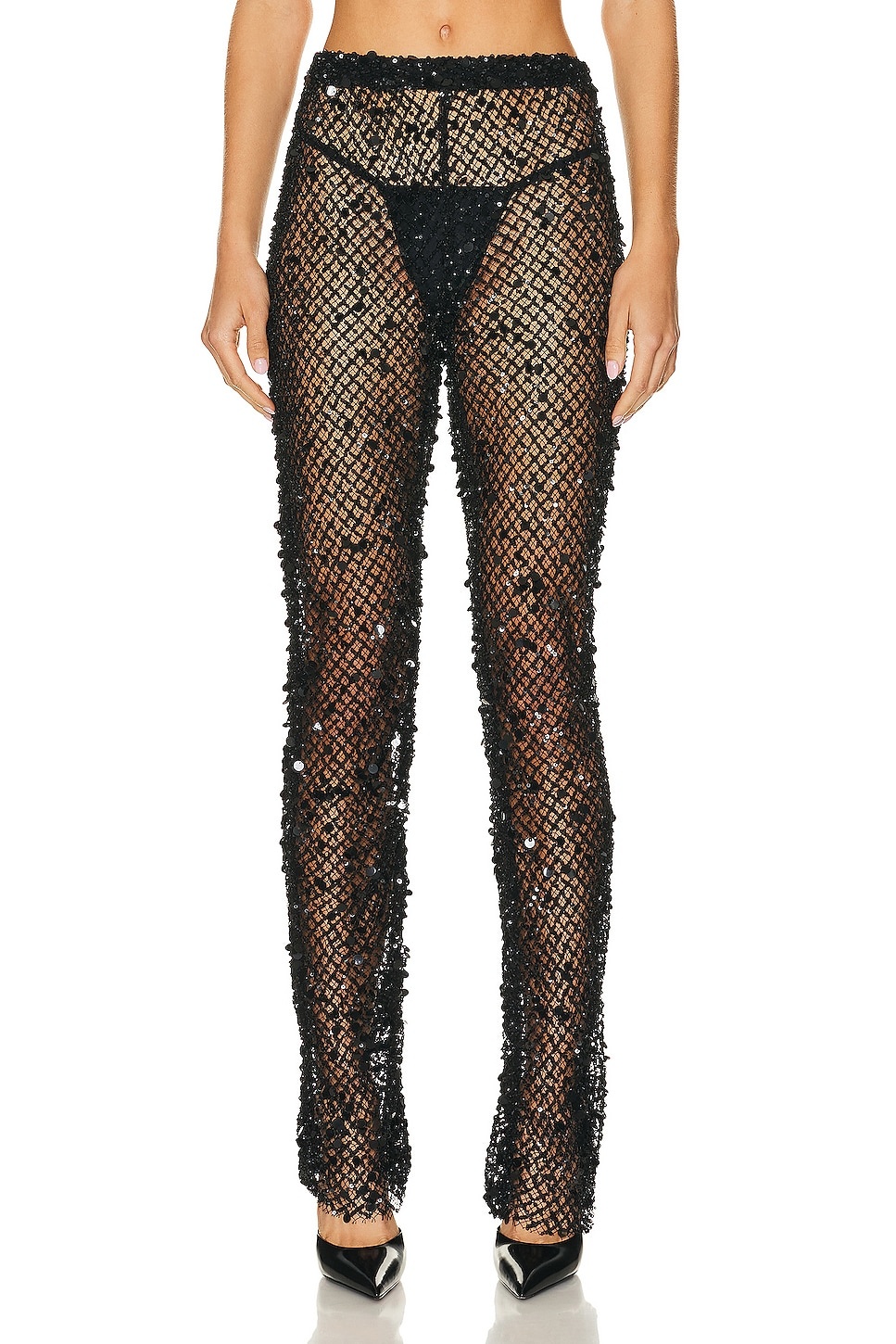 Net Mesh Sequin Flare Leg Pant