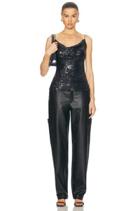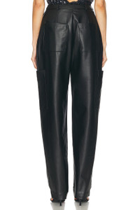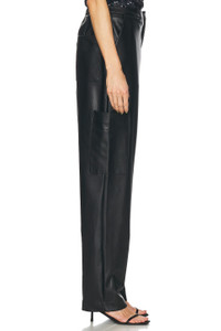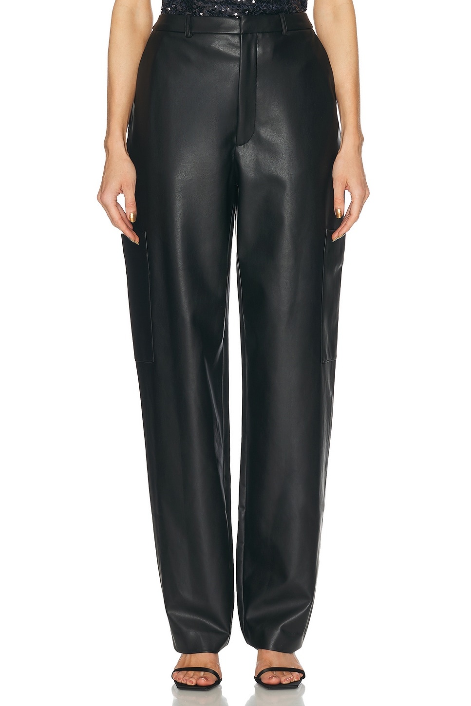 Details - 48% polyurethane, 47% polyester, 5% spandex - Made in China - Hand wash - Zip fly with button and hook and bar clasp closure - Side slant pockets - Back pouch pockets - High-waisted fit - Faux leather fabric - Our Style No. LNTF-WP26 - Manufacturer Style No. R3247154OVF