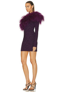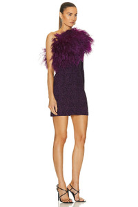 Metallic Jersey One Shoulder Dress With Feathers