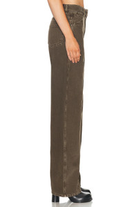 Details - Self 1: 100% cotton - Self 2: 100% cow leather - Machine wash - Zip fly with hook and bar clasp closure - 5-pocket styling - Barrel leg design - Rigid denim fabric - Made in Morocco - Our Style No. LEMF-WJ22 - Manufacturer Style No. PA1264-LD1062