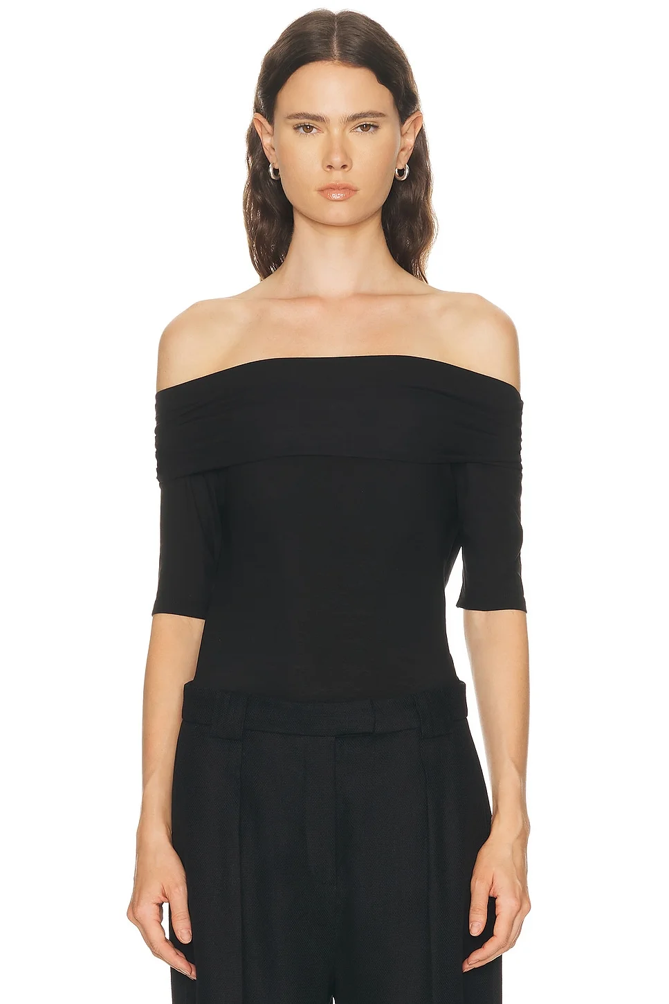 Details - 94% cotton, 6% elastane - Machine wash - Pull-on styling - Off the shoulder design - Ruched sides - Midweight jersey fabric - Made in Portugal - Our Style No. LEMF-WS122 - Manufacturer Style No. TS0028 LJ1051