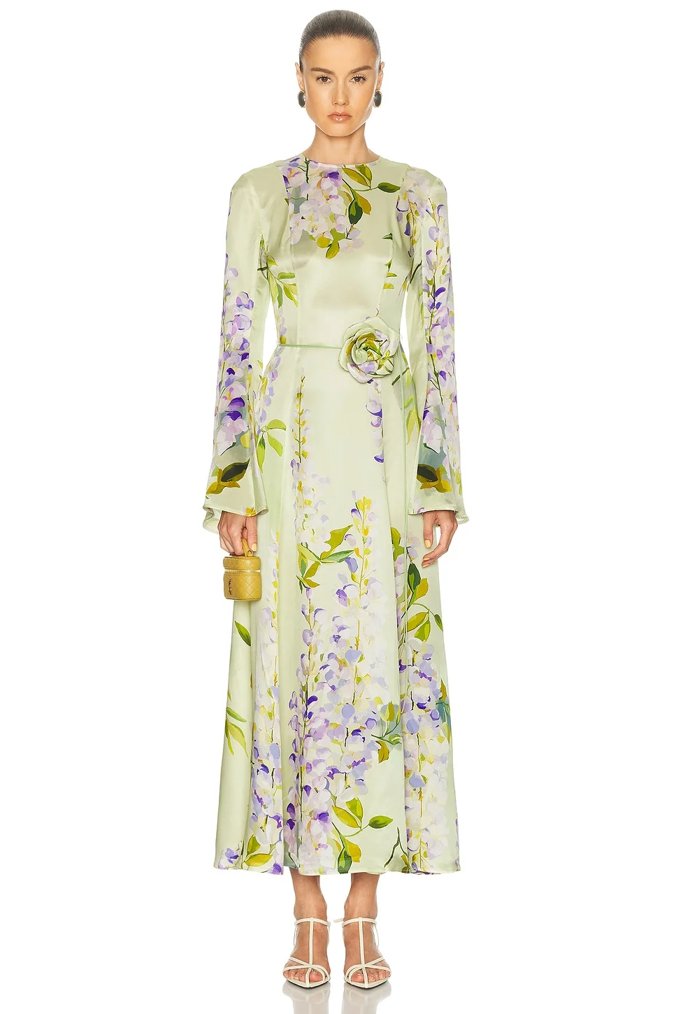 Details - 75% viscose, 25% silk - Dry clean only - Unlined - Hidden back zip closure - Detachable rosette belt with wrap around tie closure - Flare cuffs - Midweight satin fabric - Made in China - Our Style No. LLIF-WD38 - Manufacturer Style No. LLSS26028