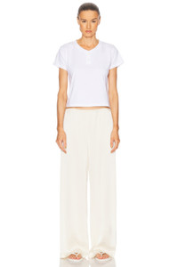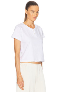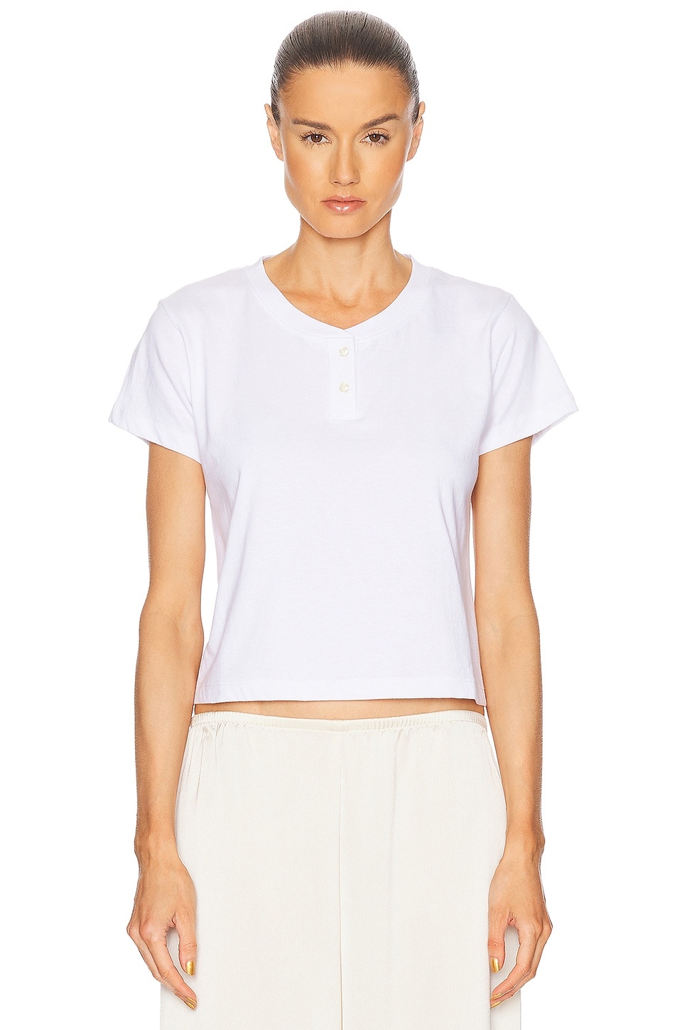 Details - 100% cotton - Made in USA - Machine wash - Front partial button closure - Ribbed trim - Cropped styling - Midweight jersey fabric - Garment is made with a semi-sheer fabric, undergarments can show through - Our Style No. LSEF-WS89 - Manufacturer Style No. LT394A-CTN
