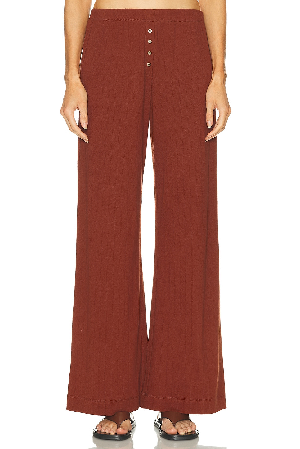 Boxer pointelle-knit cotton wide-leg pants Red