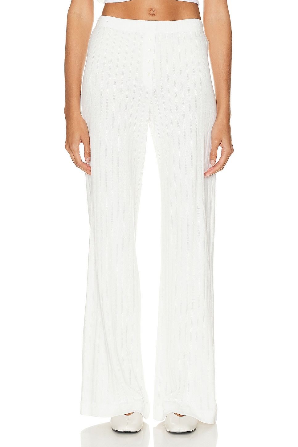Details - 100% cotton - Made in USA - Machine wash - Elastic waistband - Faux button fly - Lightweight pointelle knit fabric - Our Style No. LSEF-WP6 - Manufacturer Style No. LB054A-POINTELLE